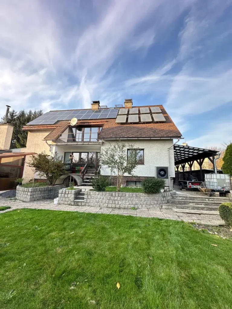 Majitel domu se rozhodl investovat do energetické soběstačnosti, což mu nyní přináší značné úspory. Původní vytápění zajišťoval plynový kotel, který byl vyměněn za tepelné čerpadlo vzduch – voda. Na domě byla instalována i fotovoltaická elektrárna o výkonu 9,02 kWp s bateriovým uložištěm 11,6 kWh. Díky vyrobené elektřině z fotovoltaiky je pokrytá celá spotřeba elektrické energie domácnosti a lze ji využít i pro tepelné čerpadlo.