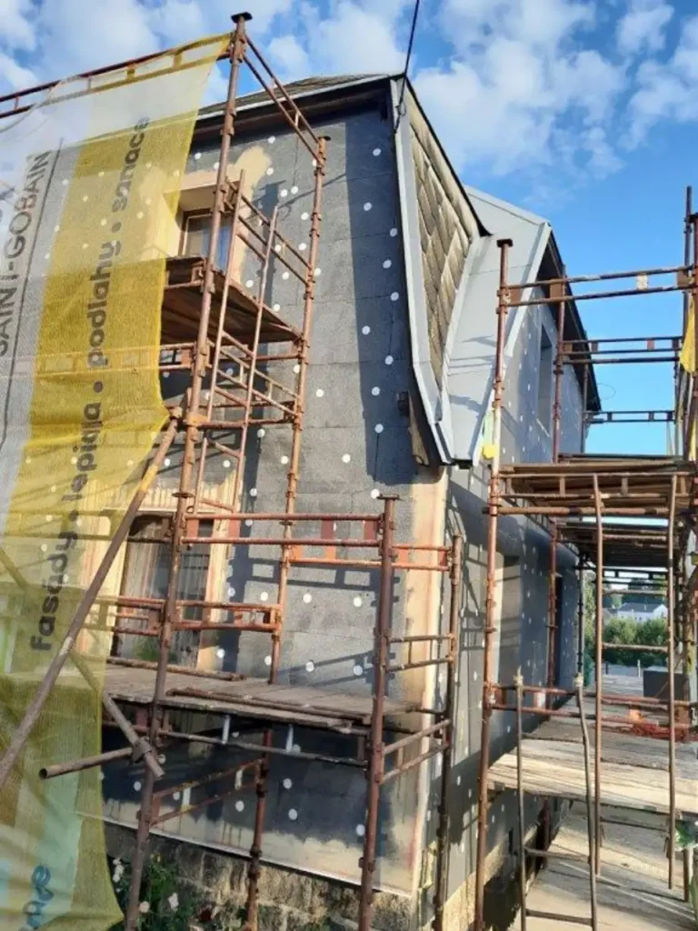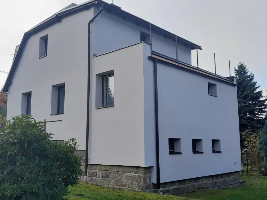 Rekonstrukce rodinných domů, při kterém majitelé využili dotaci na zateplení fasády. Zateplení šetří starému domu energii.
